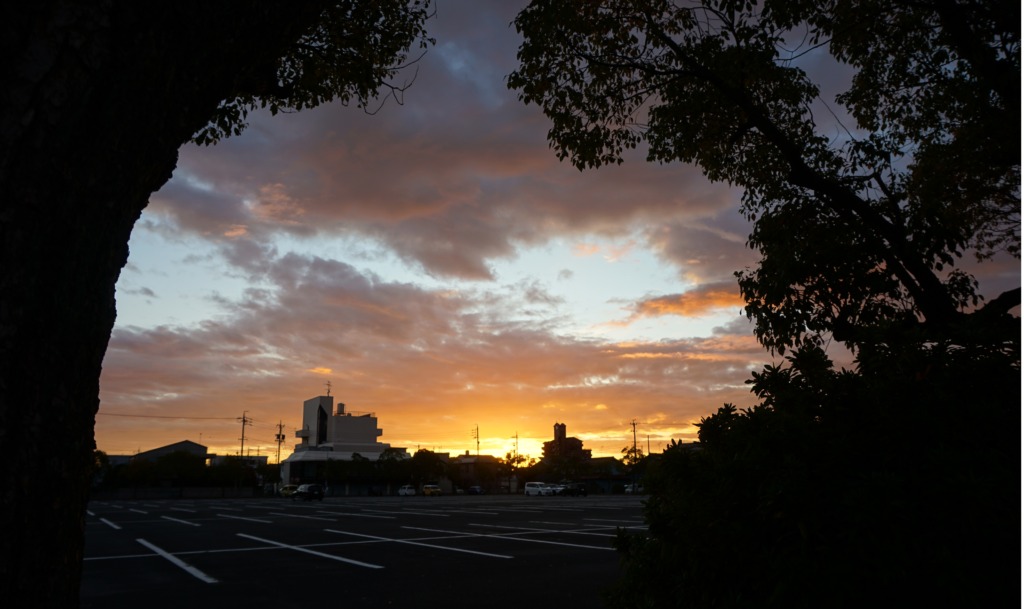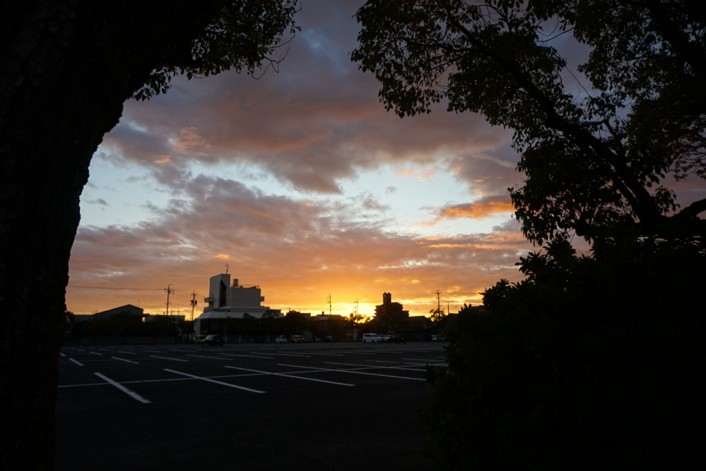 『 大垣市東公園 ラジオ体操 』 夜明け前写真 空は芸術家だね。