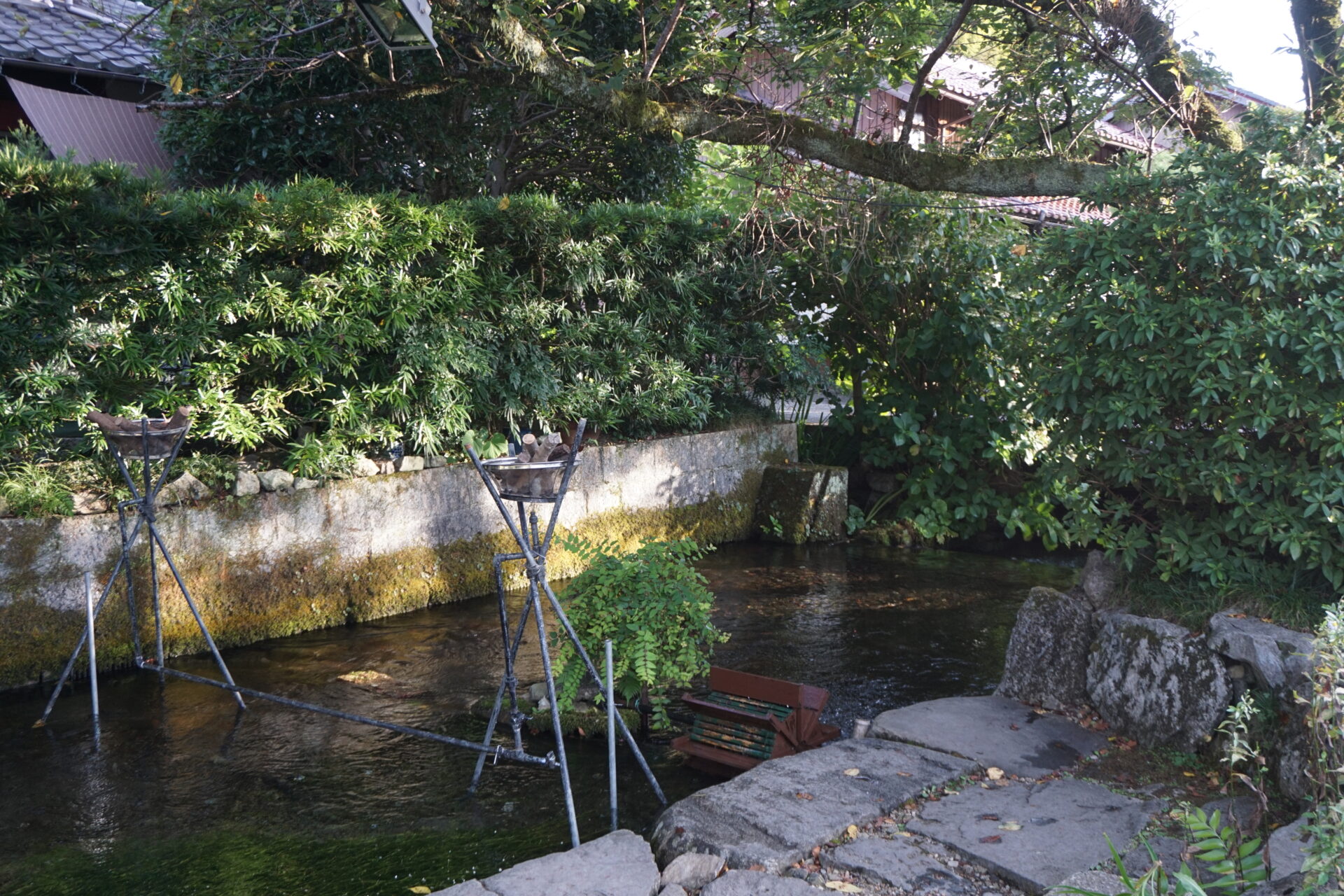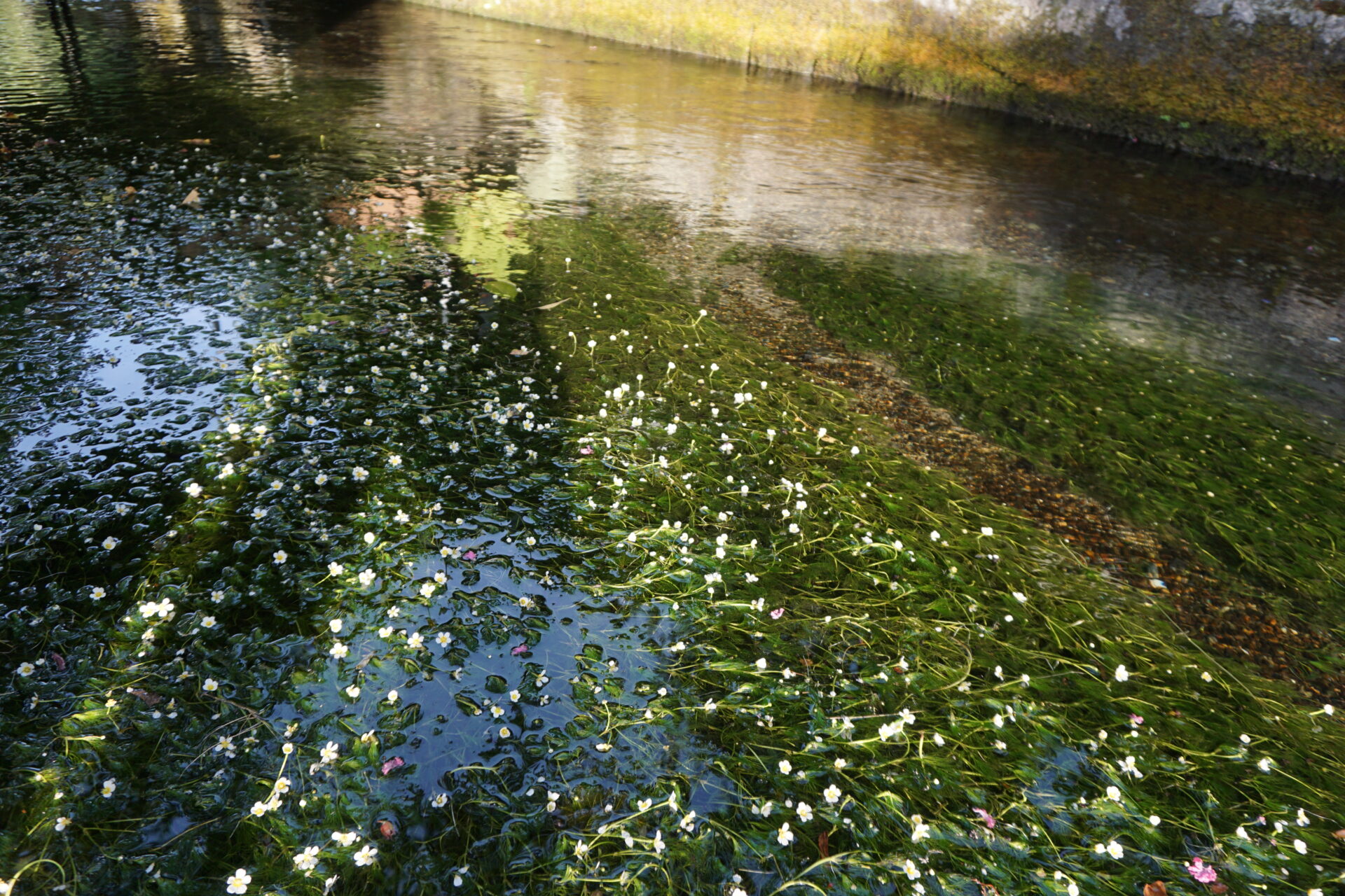 城下町を思わせるような街並みに入ると建ち並ぶ家々の前には川が流れていて、それがまた円原川と同じくらい綺麗なんだ。そこに白くて小さな花、『梅花藻』が流れに乗って咲いていて なんと涼しげな事‼