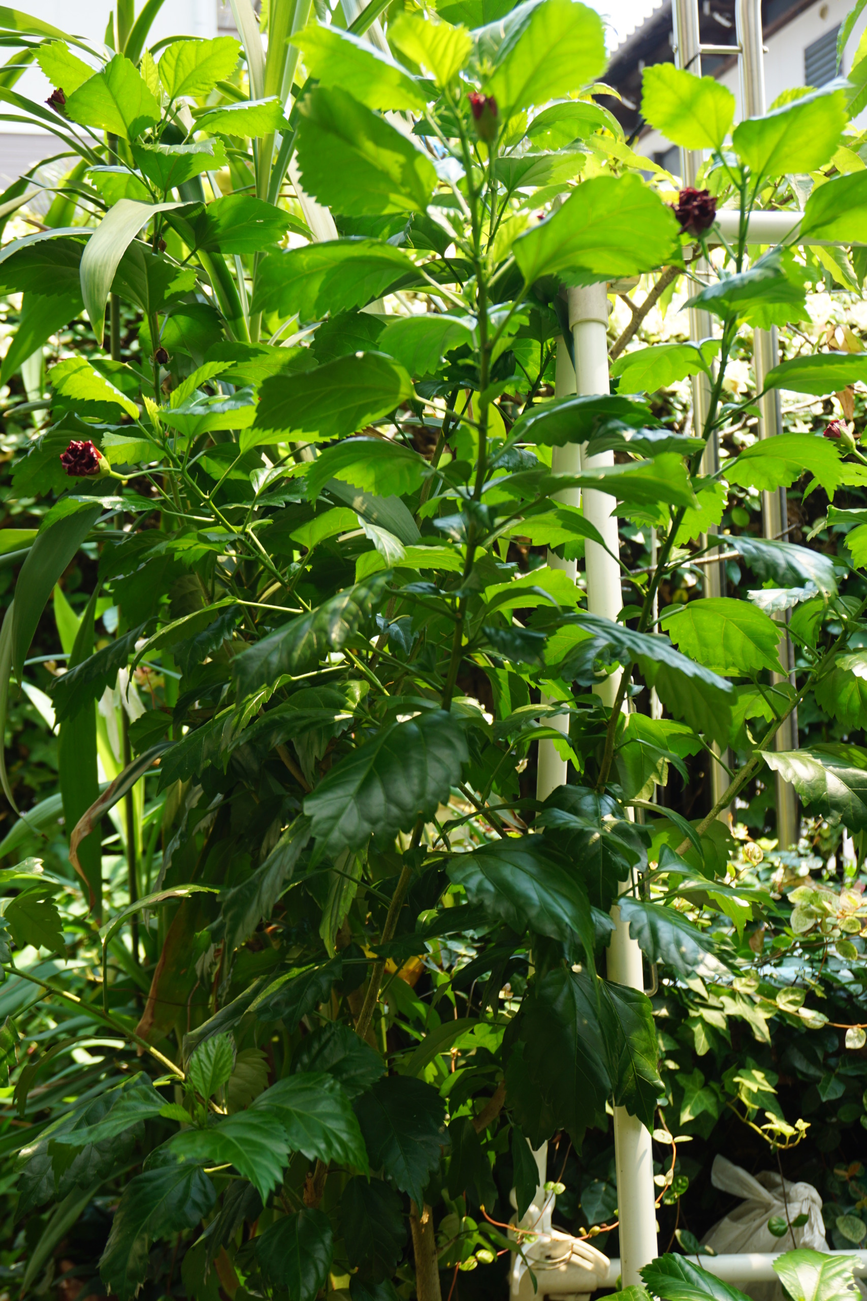 『やまんばの身長と同じ位大きくなったハイビスカスさん沢山蕾を付け毎日のように咲かせてくれるんだ。』