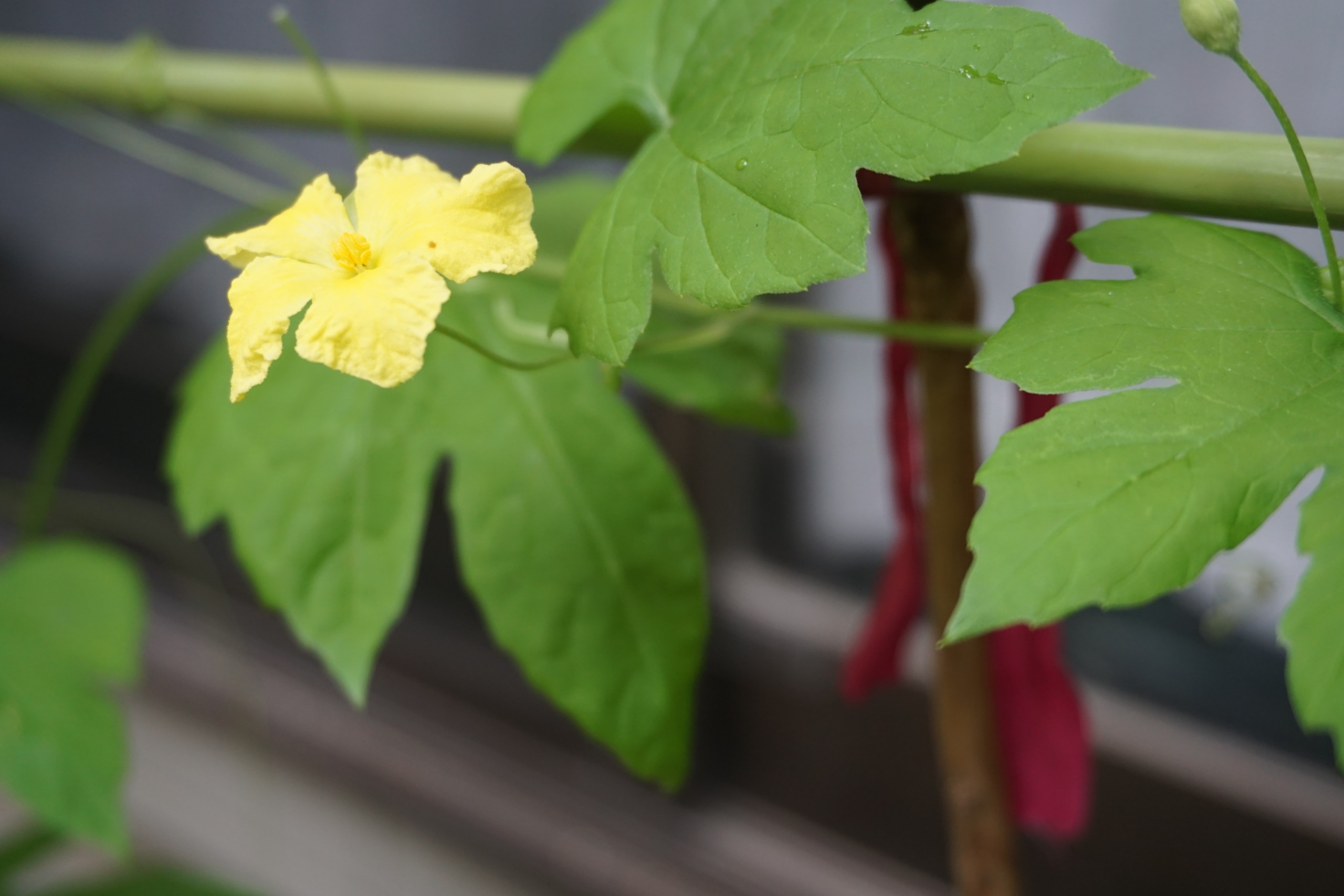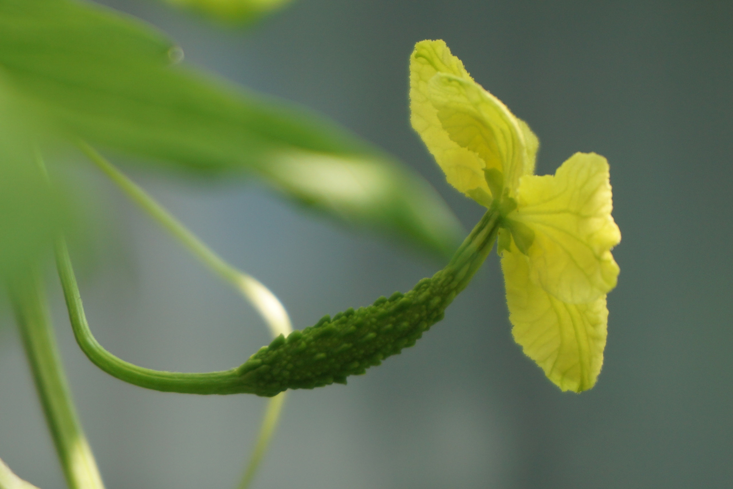 『よくこんな細い茎にゴーヤの実をつけれるね。 重いでしょ!』