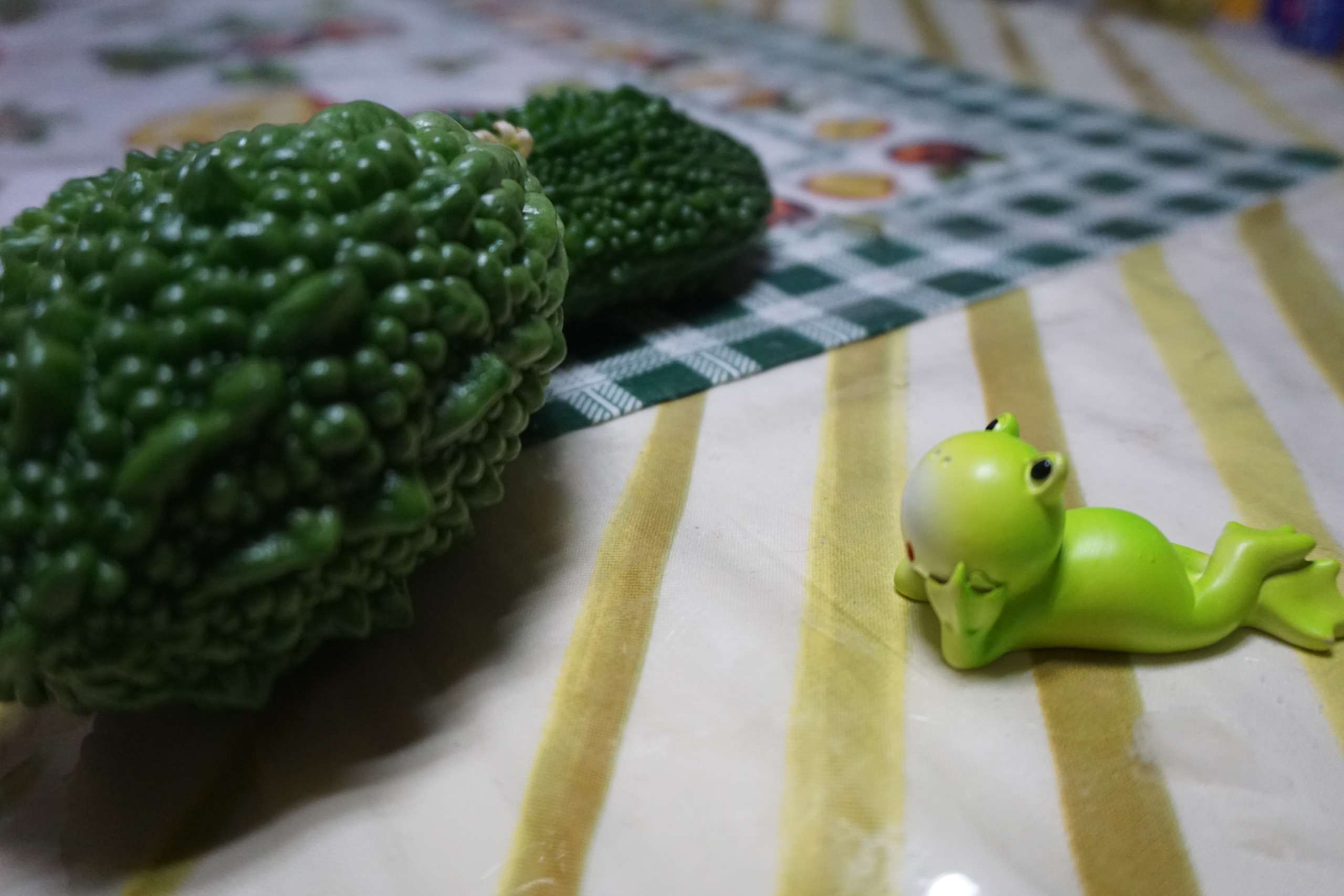 最近になって葉が黄色くなりだしたんだ。やまんばは葉が黄色くなるのは肥料不足の可能性があると学習、それにゴーヤは長く収穫できるから追肥で肥料を切らさない事が大切なんだってさ。それもリン酸肥料がいいらしくて運よくコウモリの糞バッドグアノがうちにあったから早速、やまんば、 やってみよう‼