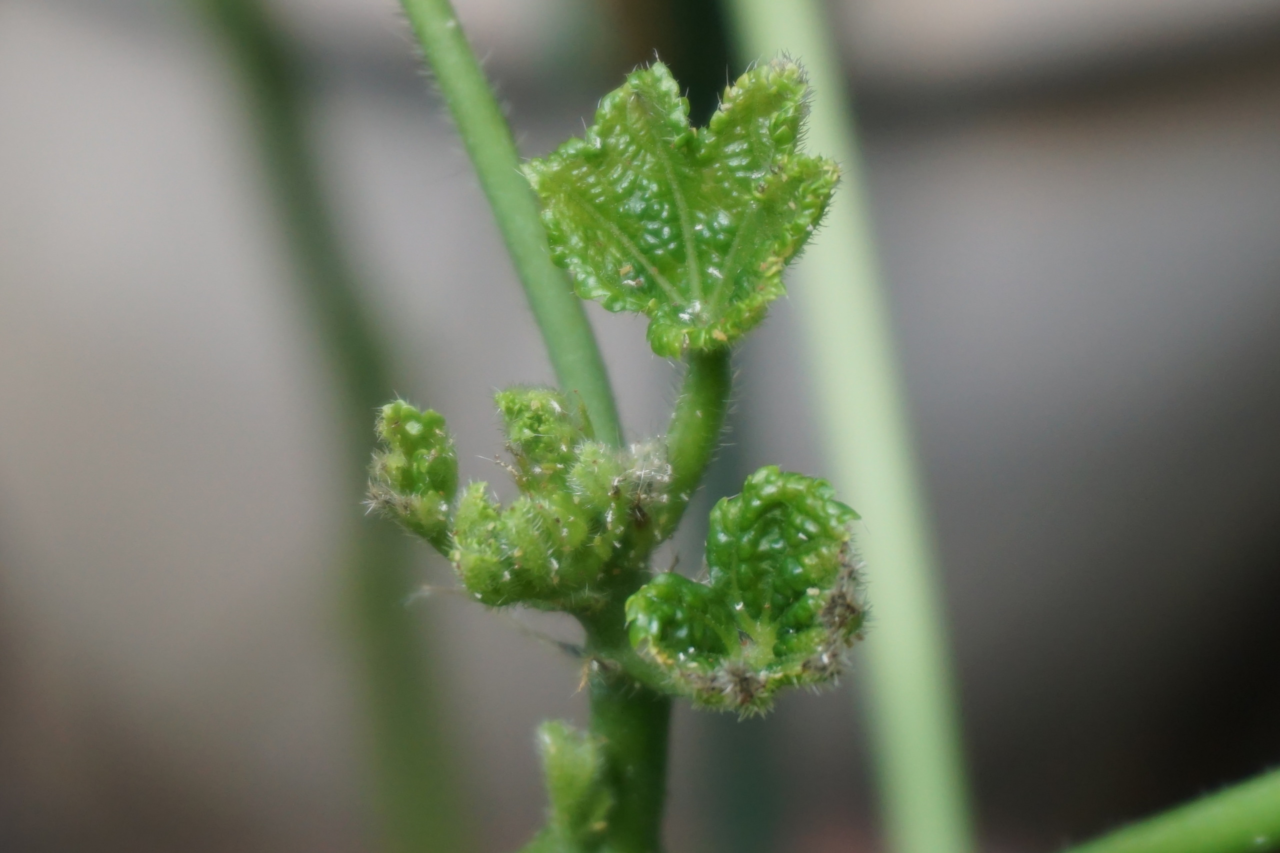 『オクラさん、新芽に何かつけてる。何かな~?』