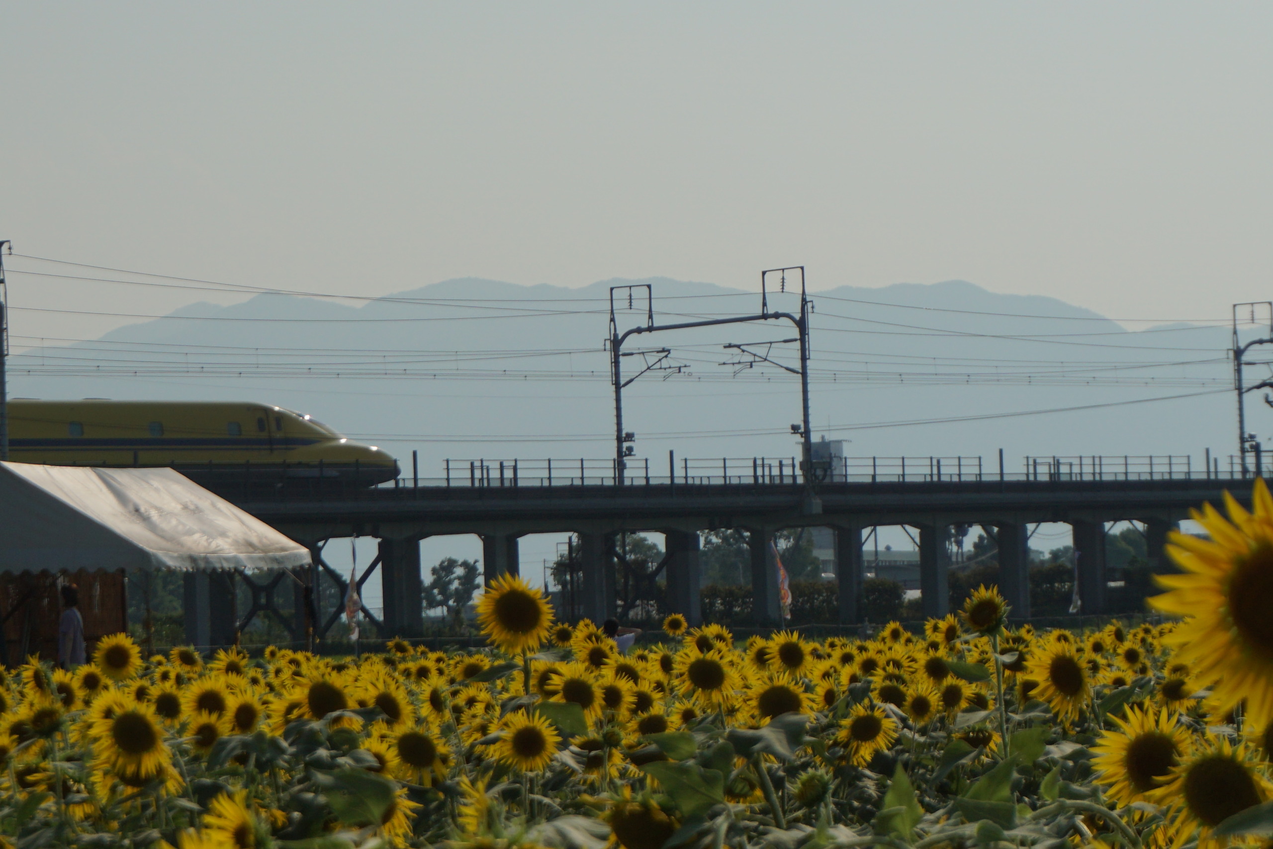 2025年の大垣ひまわり畑からドクターイエローの撮影が終わりました。・・・・茎のへたったヒマワリが写っていては頂けないと思いトリミングをした写真が数枚あります。 勘弁してね!🙇