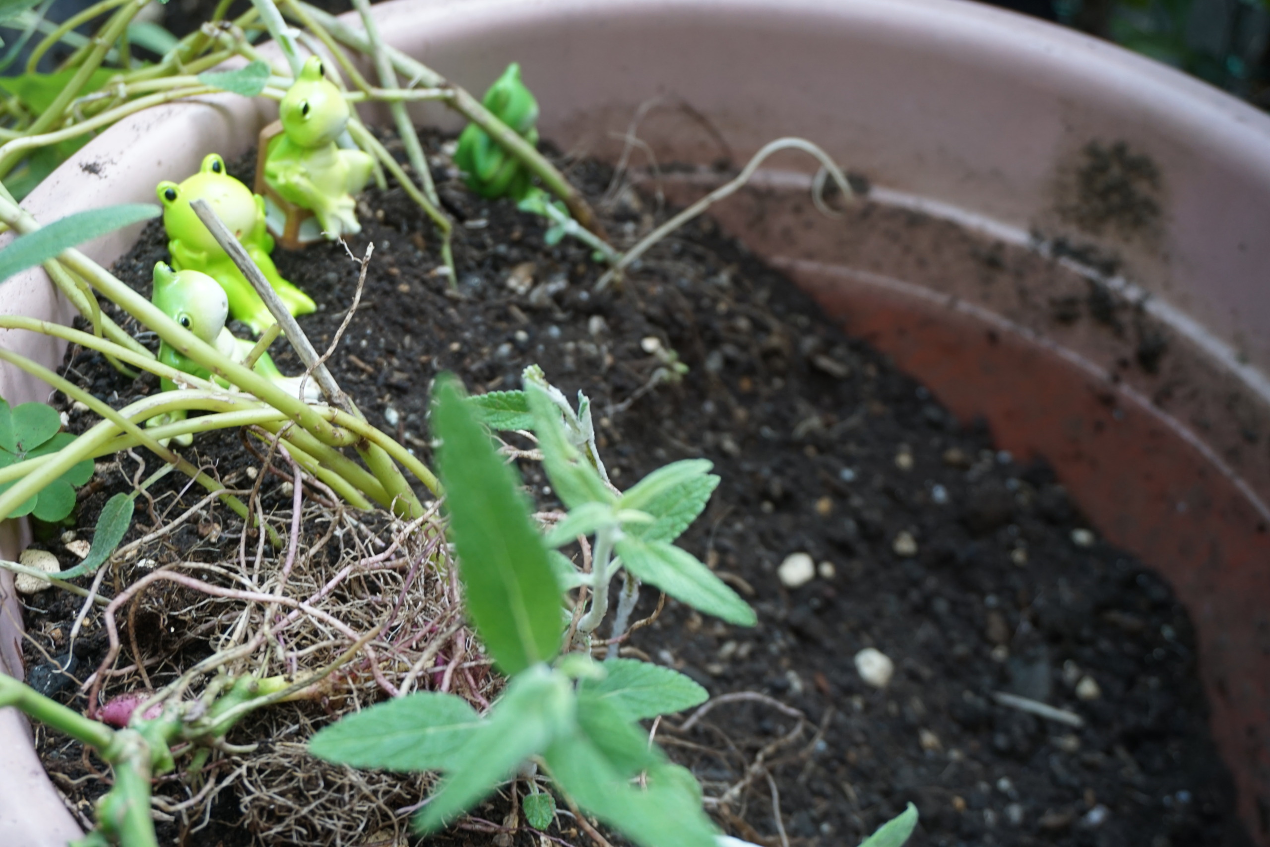 『こんなに葉が茂ってるんだ。 さて⁉ どんなお芋が出て来るのかな?』
