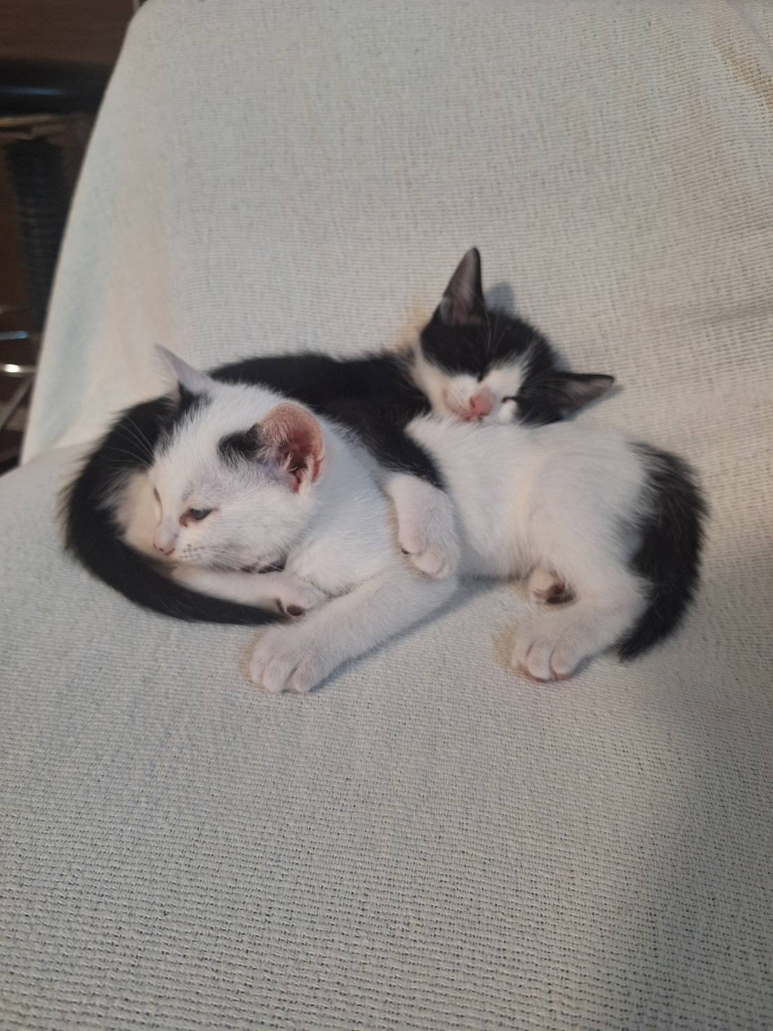 『 まだ二ヶ月頃の兄弟だよ。 』 ・・・今、知人宅へ引き取られ、老夫婦が六匹の猫の世話でギブアップしてるんだ。