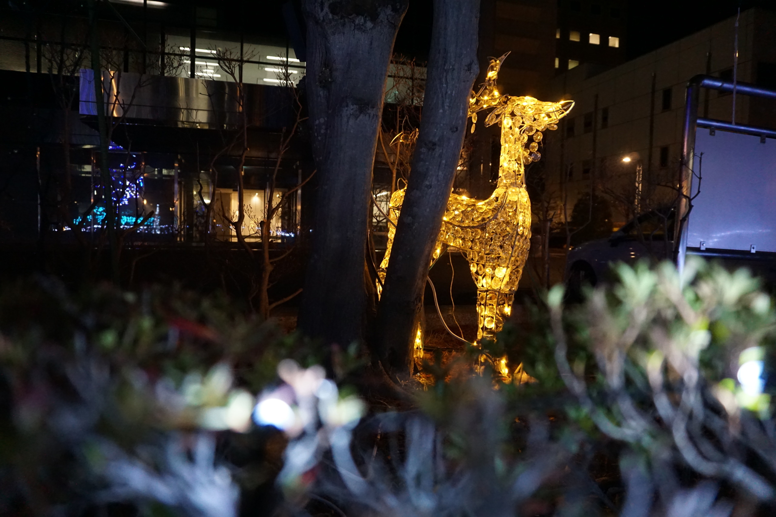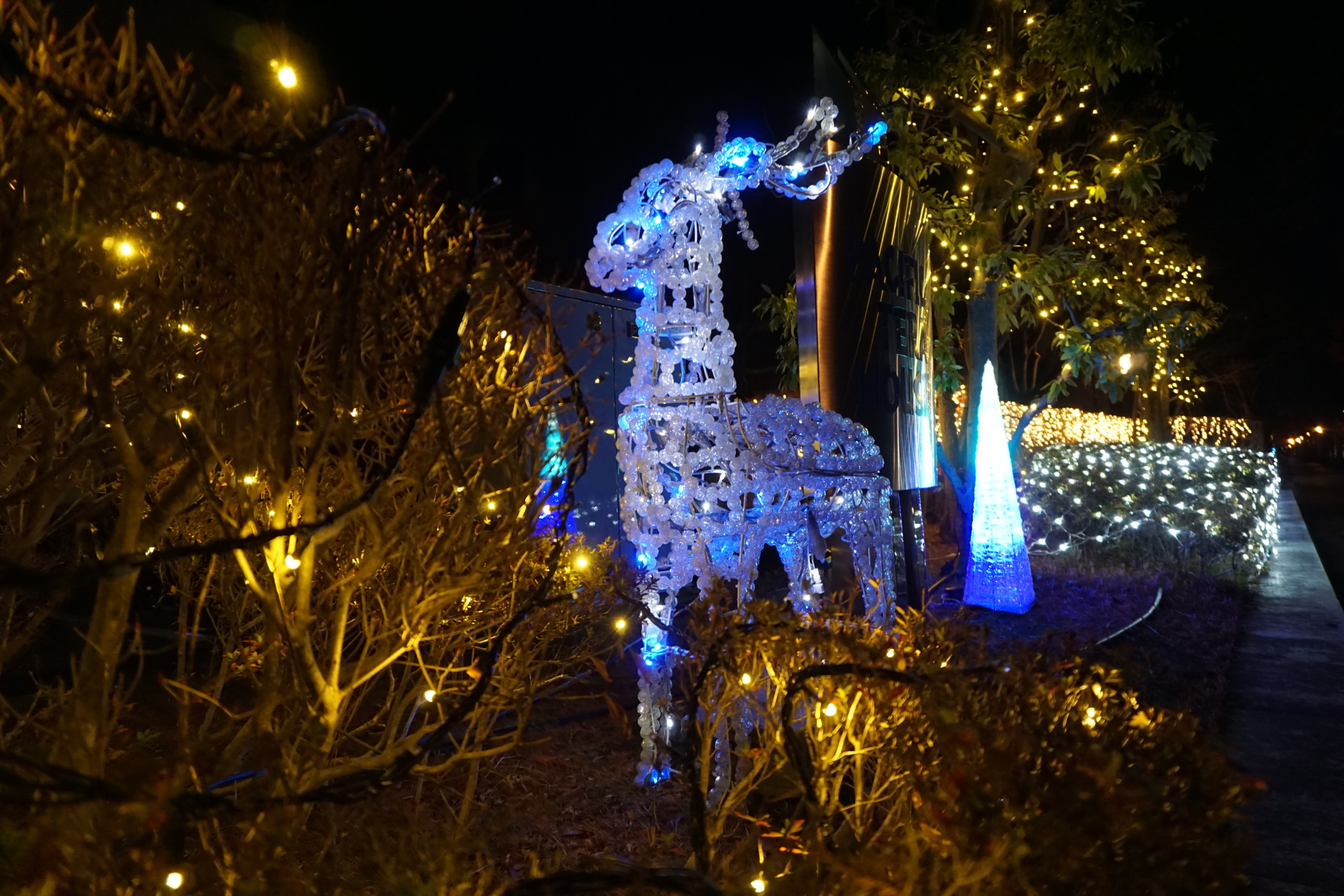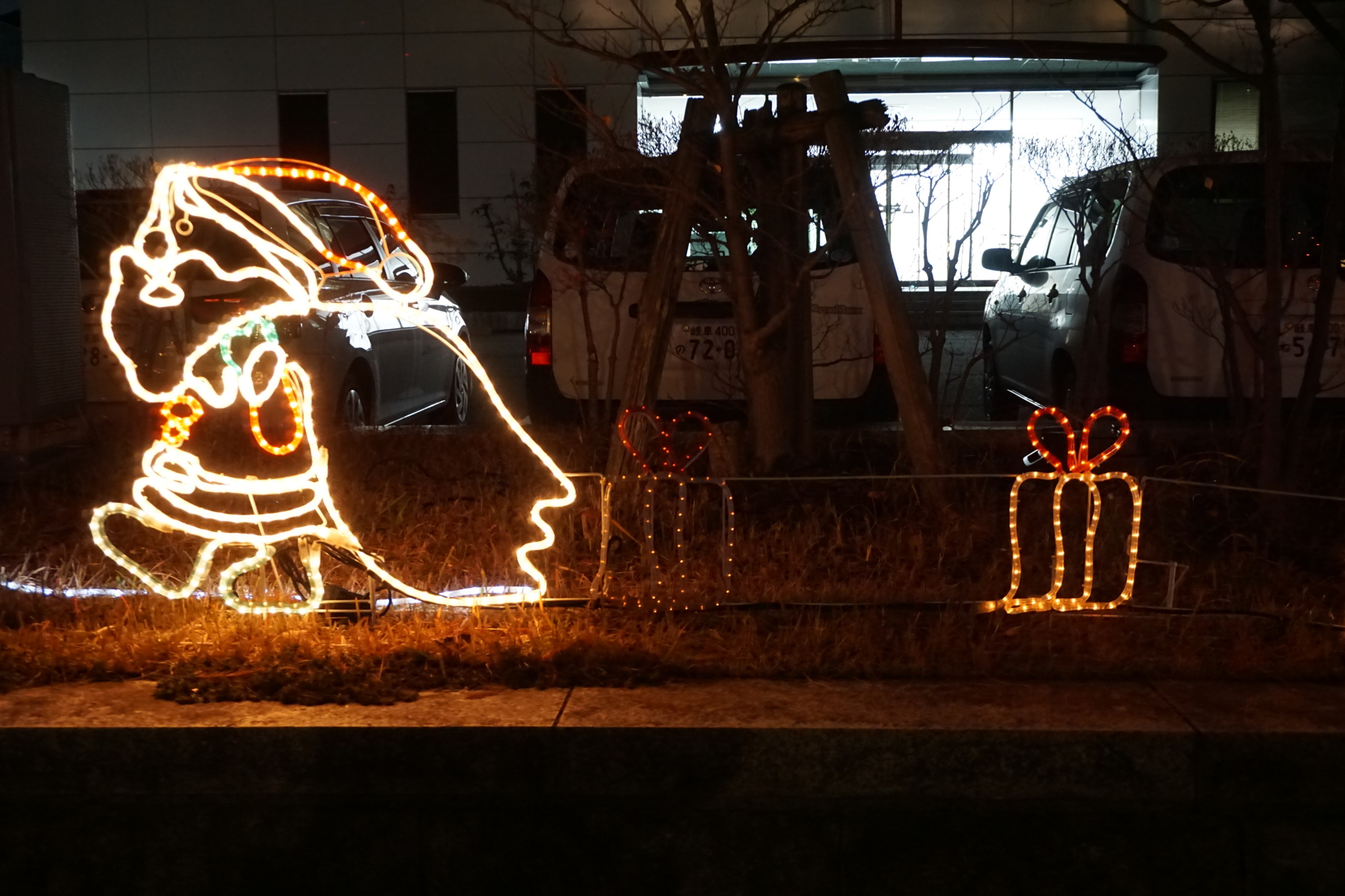十二月に入り、五時と言えばもう真っ暗なんだ。五時前になるとやまんばの僕を呼ぶ声がして、慌てて帰るんだ。僕が晩御飯を済ませた頃、おじさんが玄関を出て行き門の前に車が止まった。しばらくしてやまんばが出て来ると車に乗り込み出掛けて行った。・・・・「こんな真っ暗になってどこに出掛けるんだろう?・・・?・・・?・「今度はね、クリスマスのイルミネーションの写真を撮るんだってさ!やまんば『可愛いなー!』の連発なんだよ。見てねー!